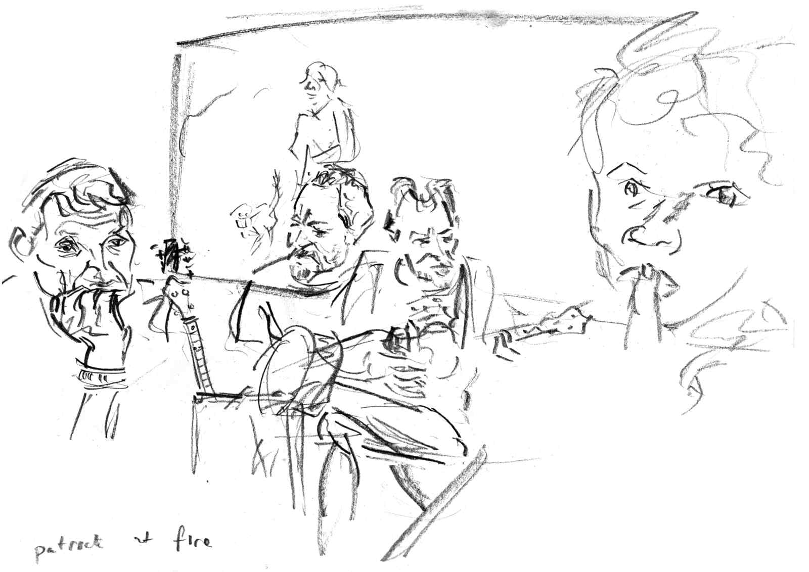 Jason was at a loose end - describing himself as a lost soul - and introduced himself and sat down with me, and drew in my other pad. After a while he got paranoid about someone he saw in the crowd and shot off.