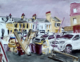 I wanted to go out for a walk but I couldn't get out because of the rain so I started this view from the front porch