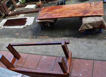 This is Patrick's TV table, and the pieces as I finished and varnished them Some earlier pics are here